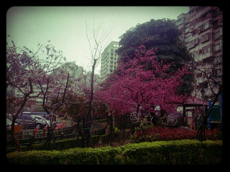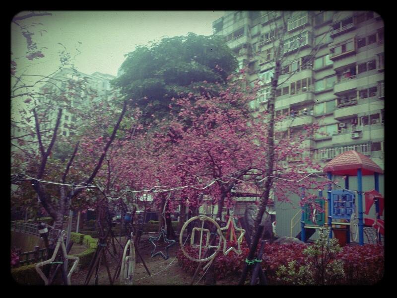 從來沒有看過櫻花因此很稀奇,大開眼界,平常這兒的小公園有滑歩機等運動器材,夜裡我常常來這裡健身運動。經過一整個漫長濕冷的冬天,春意悄悄地而且又相當快的爬上枝頭,我之前都完全不知道這些尋常又纖細的樹木會是櫻花!