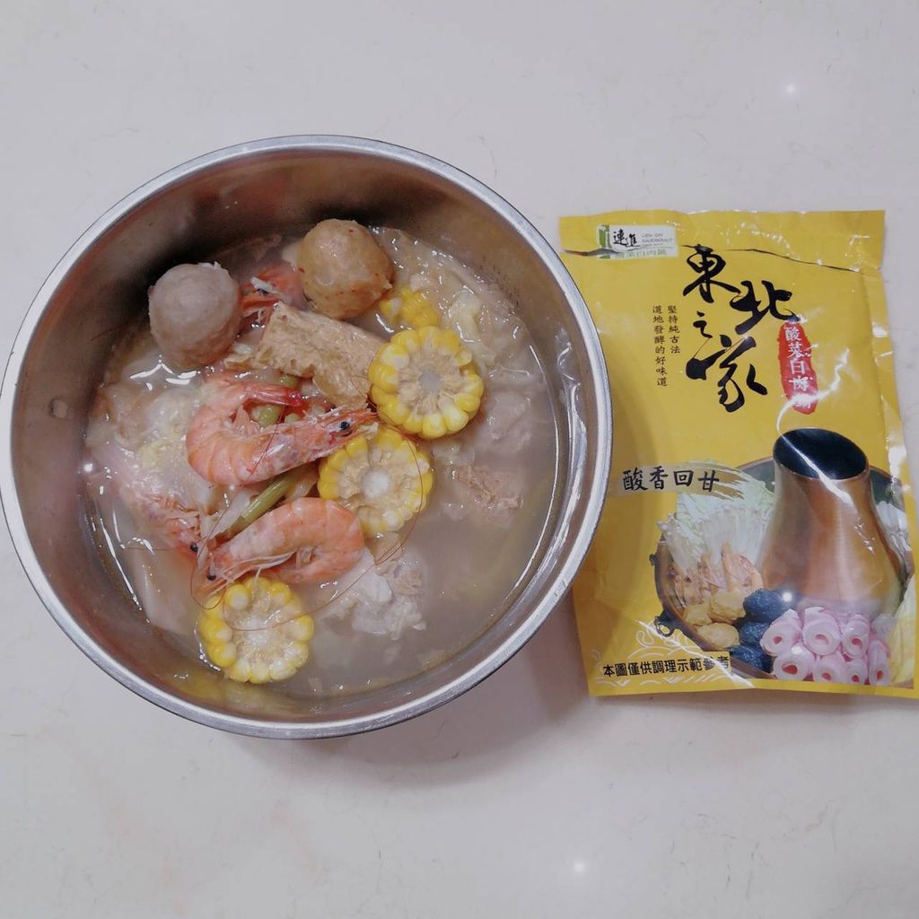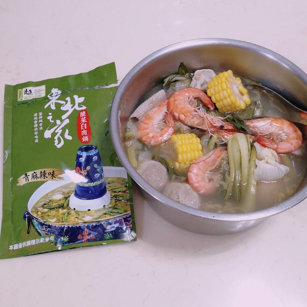 火鍋只有煮一鍋是吃不夠的,馬上用了都挺好Live蝦跟著連進東北之家酸菜白肉鍋~青麻辣味煮成酸中帶點香辣的綠色酸菜白肉鍋,湯頭與品質一吃就讓人大呼過癮,喜歡吃辣的人一定會很偏愛綠色這一包~~青麻辣味的酸菜白肉鍋!