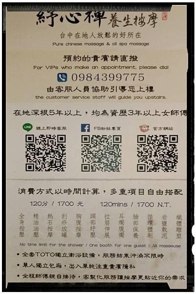 純按摩的紓心禪養生按摩,世外桃源,人間仙境,技師力道與手技都比台北好~~