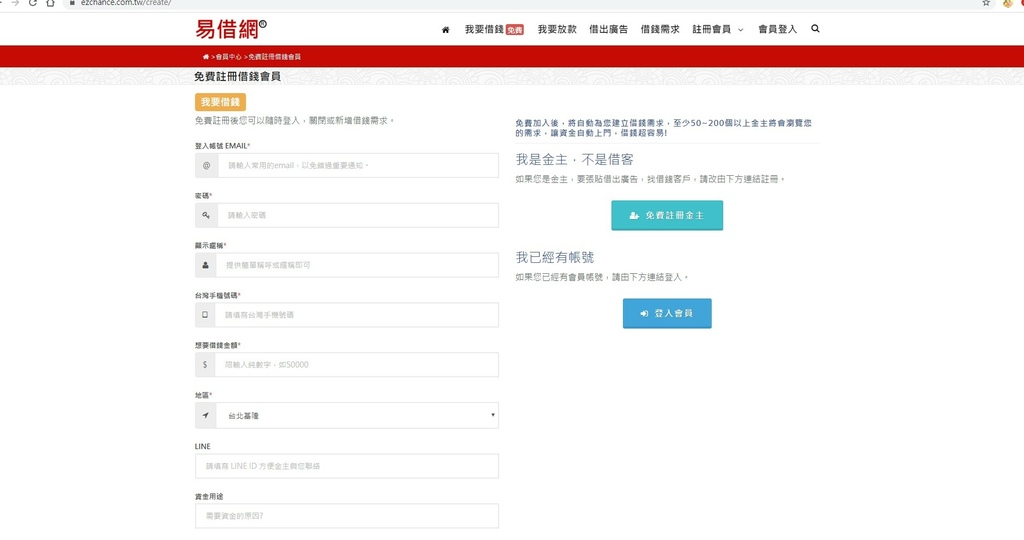 免費註冊借錢會員的網路頁面↓